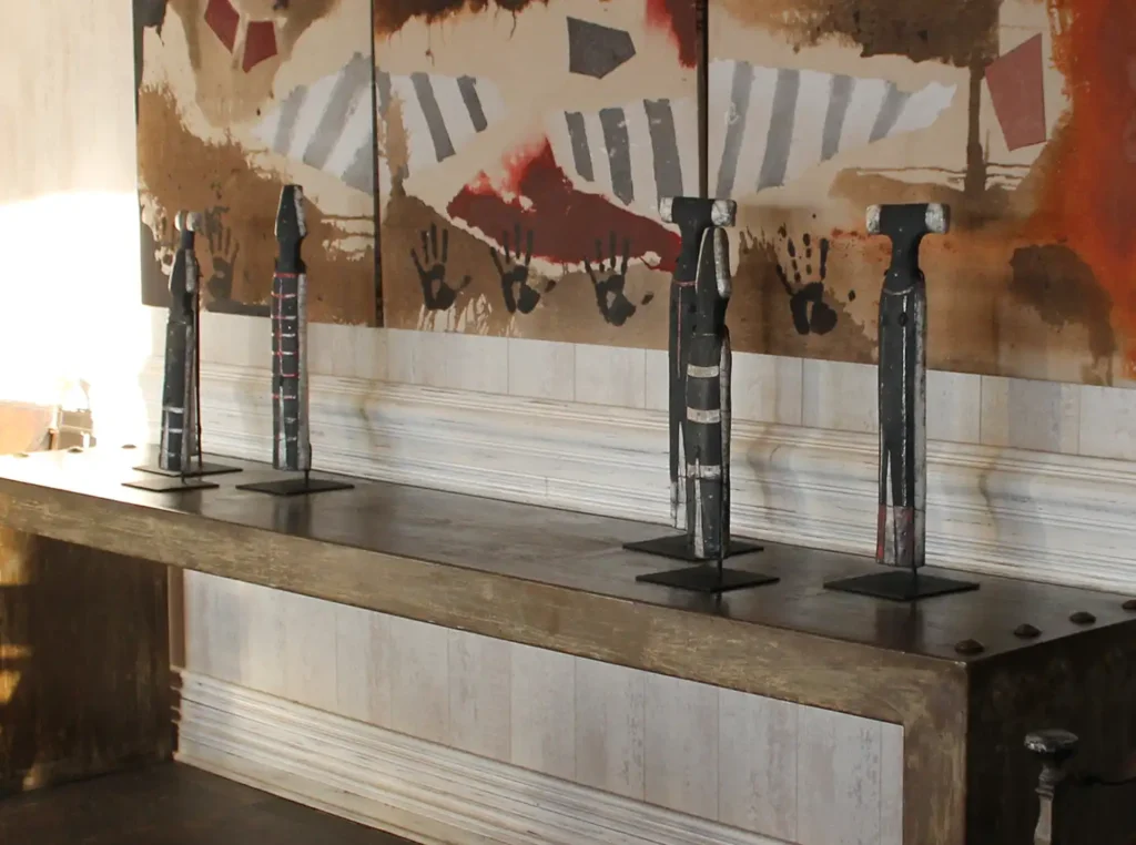 The Selk’nam, also known as the Onas, were one of the Indigenous peoples of this region. They lived in the northern part of Tierra del Fuego. These pieces represent one of their most iconic traditions: the Hain ceremony, a powerful rite of passage in which young men were initiated into adulthood. The ritual involved striking body paint, theatrical performances, and the portrayal of spirits—reinforcing social roles and community values.