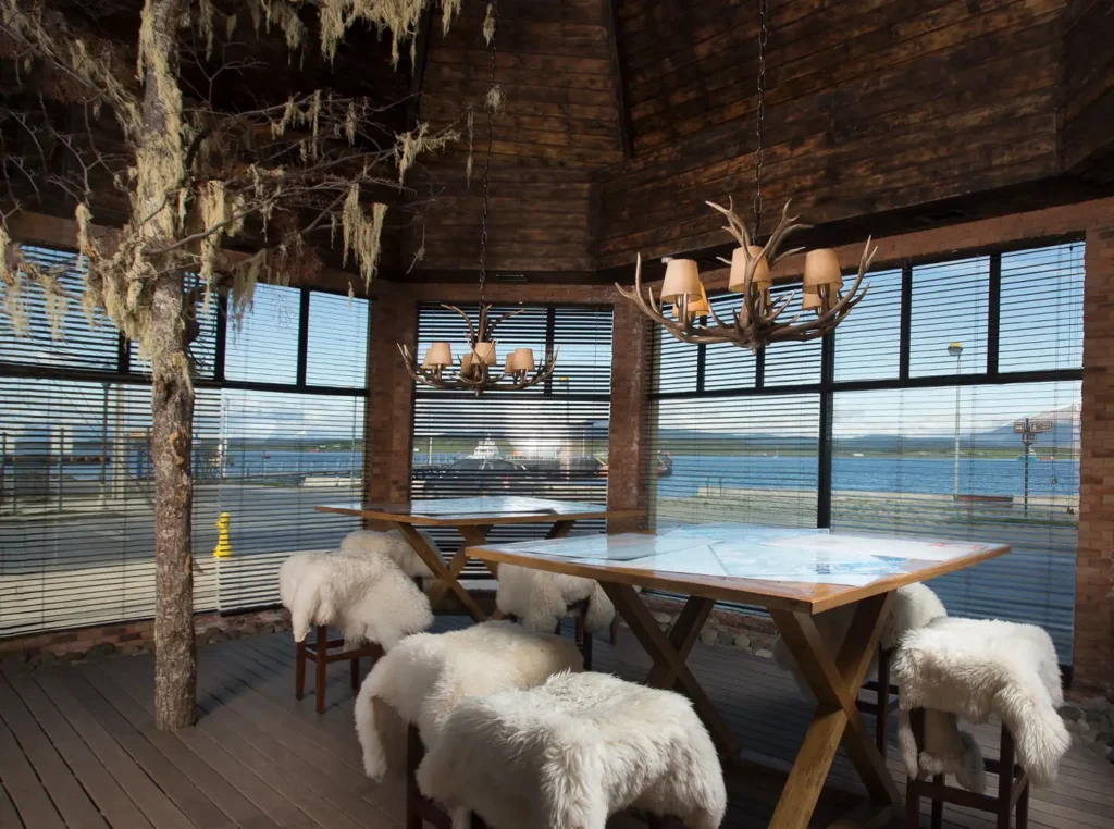 This lifeless Ñirre was recovered and integrated into our interior design, as it forms part of the unique landscape of our region. It is adorned with "old man's beard", a lichen known for its long, grayish strands that hang from the branches like beards. This lichen grows on other plants—usually trees—without harming them, and is commonly found in the forests of Southern Patagonia.